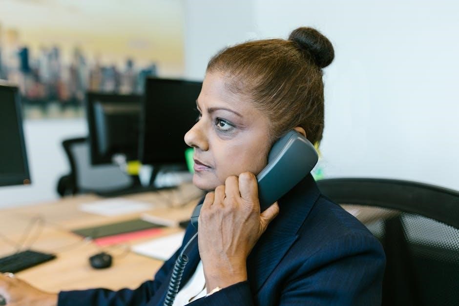 To place a call on hold‚ press the ‘Hold’ button during an active conversation; the caller will hear hold music․ To retrieve the call‚ press ‘Hold’ again․ For call transfer‚ press the ‘Transfer’ button‚ dial the extension number‚ and wait for an answer before completing the transfer․ Ensure the recipient is ready before initiating the transfer process․